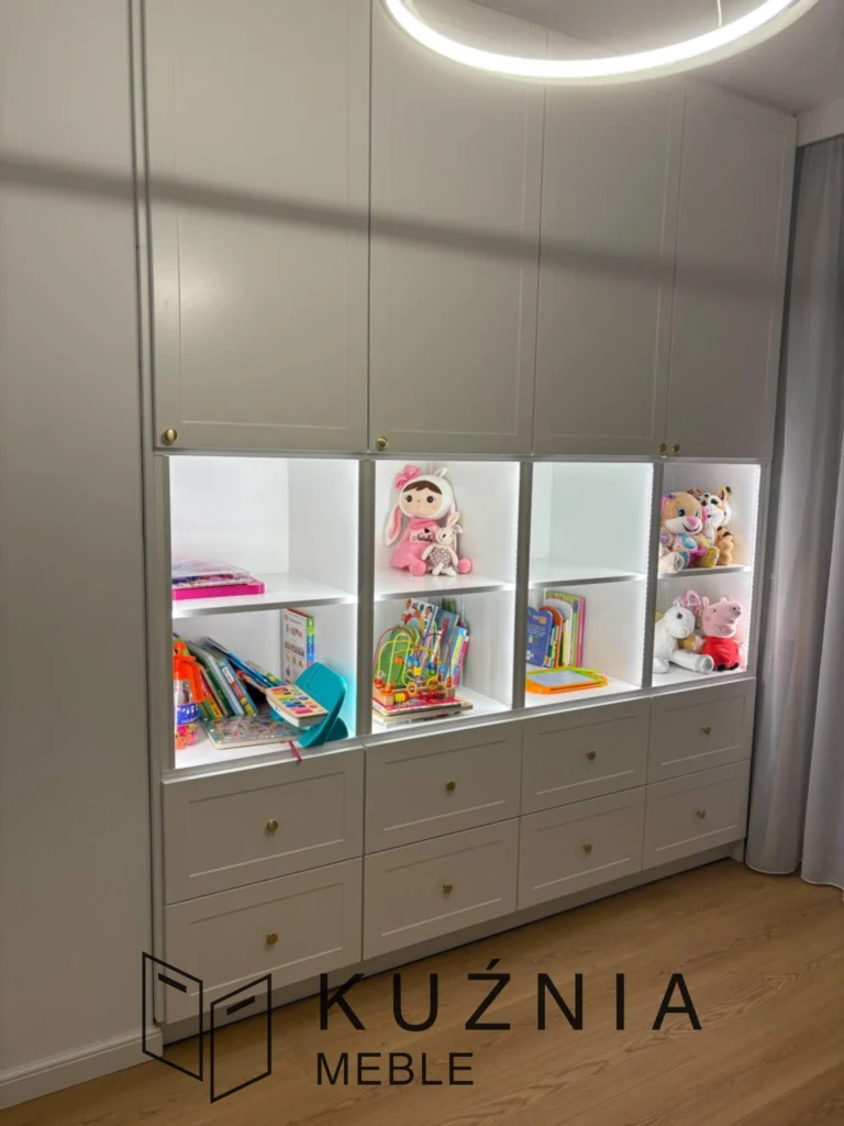 • Trwałość na lata: Pracujemy tylko na solidnych płytach meblowych i markowych okuciach. Dzięki temu półki nie uginają się pod ciężarem ubrań, a drzwi nie opadają.
